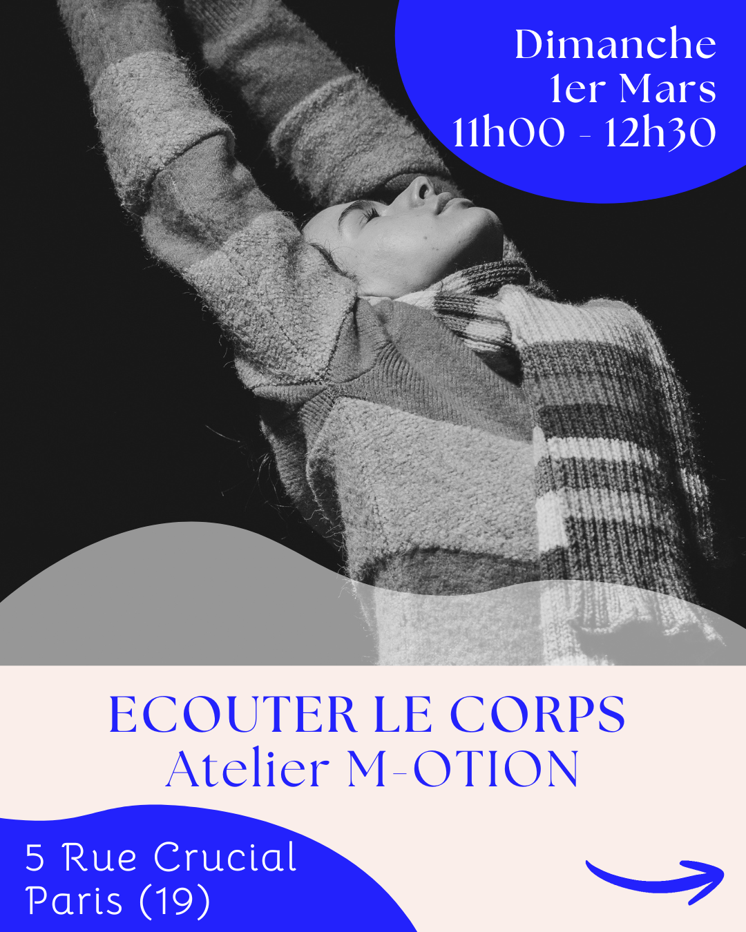 Embarquez pour explorer vos sensations, vos émotions et votre essence à travers la musique & la danse. M-Otion est un atelier d’expression corporelle, accessible à tous/tes, guidé par la voix et la musique.